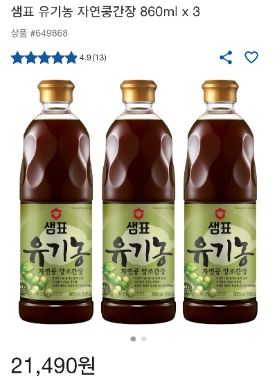 3년 이상 농약과 화학 비료를 사용하지 않은 땅에서 키운 엄선한 유기농 콩과 유기농 밀을 발효하여 만든 순수 프리미엄 간장이라고 합니다.