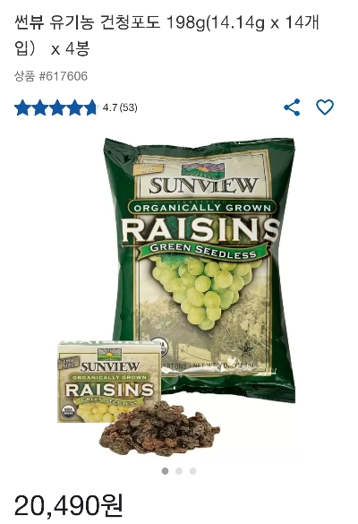 2. 썬뷰 유기농 건포도(청포도)