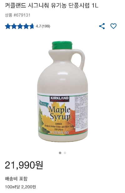 1. 커틀랜드 시그니처 유기농 단풍시럽 1L