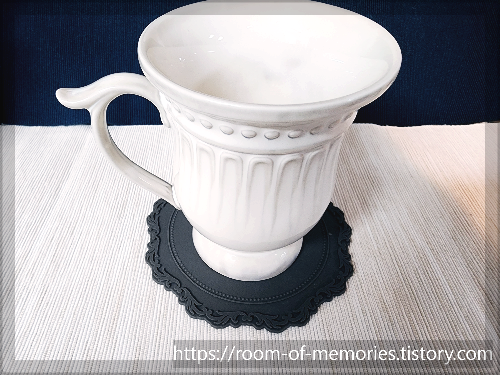 진회색으로 구입. 어느 색상의 컵과도 잘 어울려서 만족스럽다. 그리고 무늬가 섬세하고 고급스러워 손님 상에 내놓기에 좋다. 그리고 실리콘 재질이라서 물기만 잘 닦아주면 되어서 관리하기 편하다. 그러나 비싼 점이 단점. 가격 할인하면 다른 색상도 구매해보고 싶다.