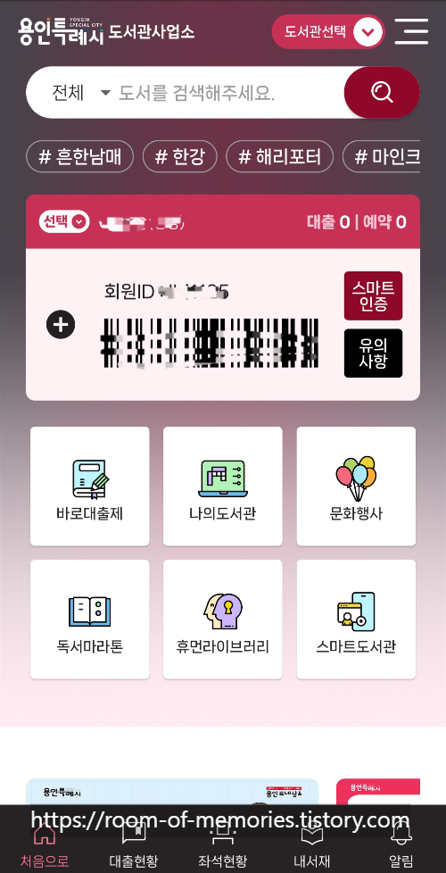 용인시 도서관 온라인 회원증, 바코드 받는 2가지 방법