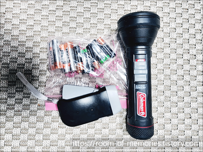 건전지는 따로 준비해 두었다. 예전에 손전등에 건전지를 넣어 보관하였더니, 손전등이 고장 났었기 때문이다.